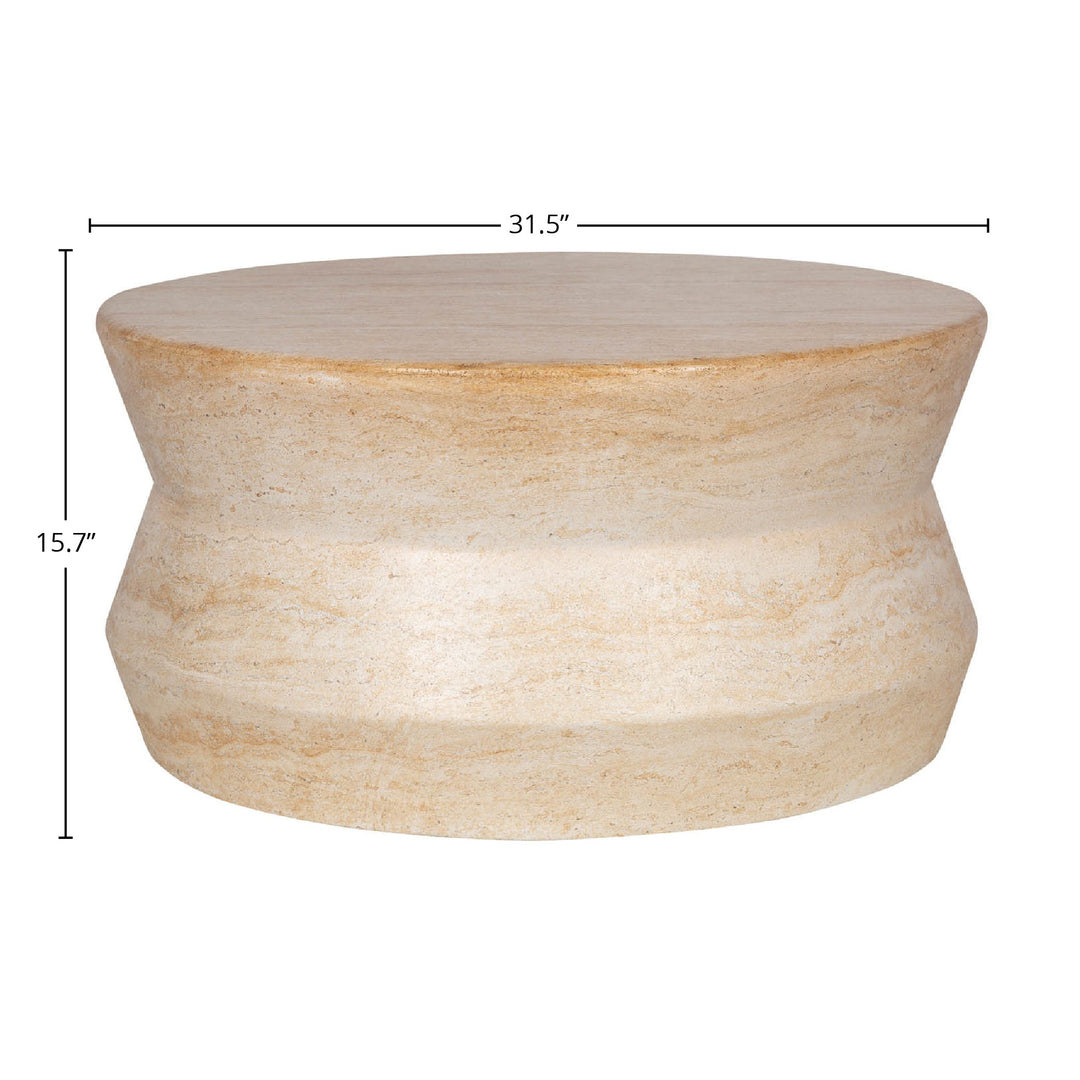 • The travertine finish lends a serene and calming aura to the coffee table.