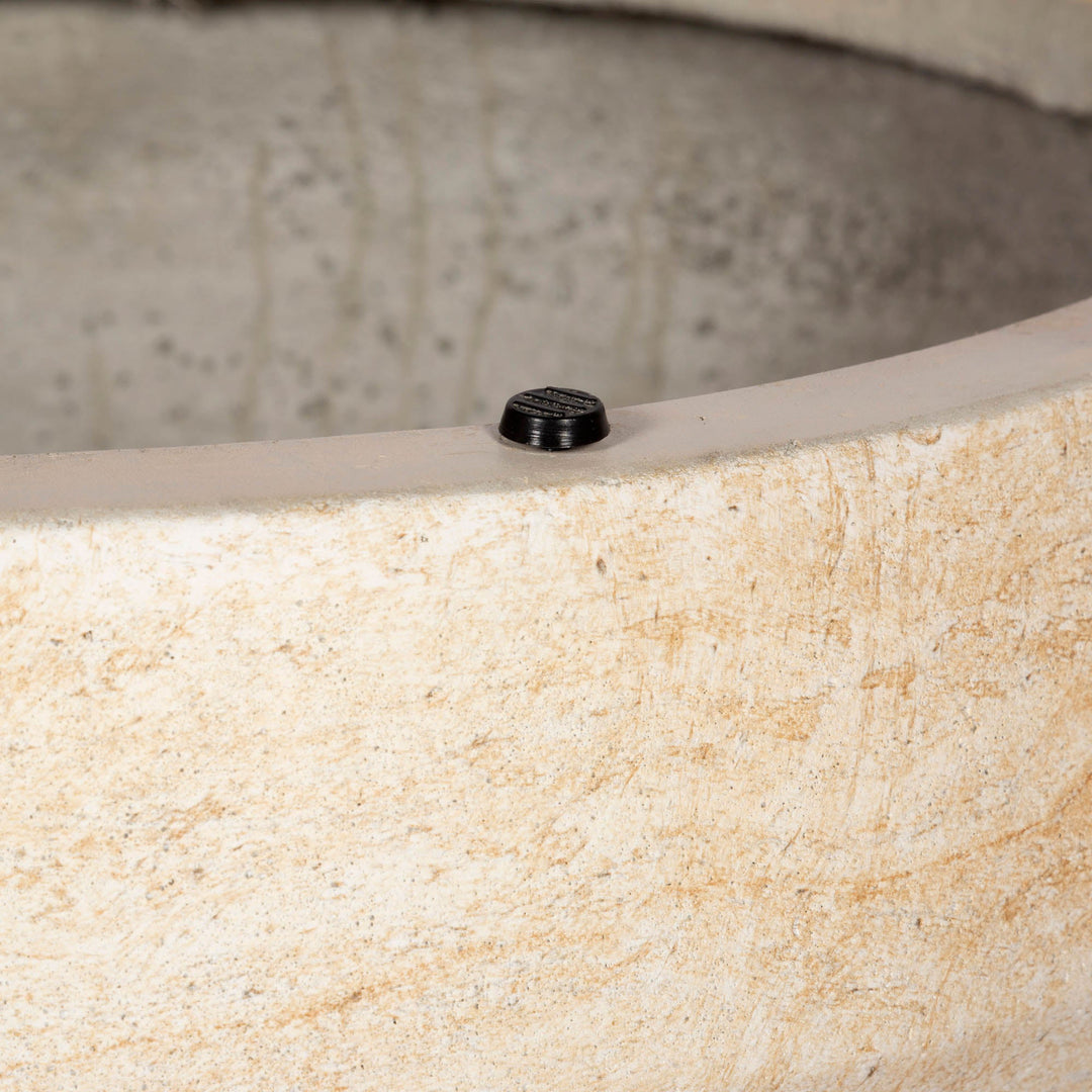 This coffee table, made from concrete in an elegant travertine finish, is a versatile masterpiece that embodies both function and beauty.