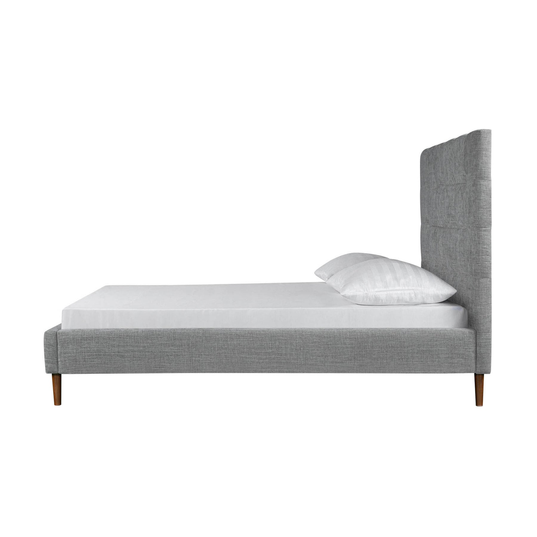 • Featuring a tall, grid-tufted headboard and upholstered in 100% polyester fabric