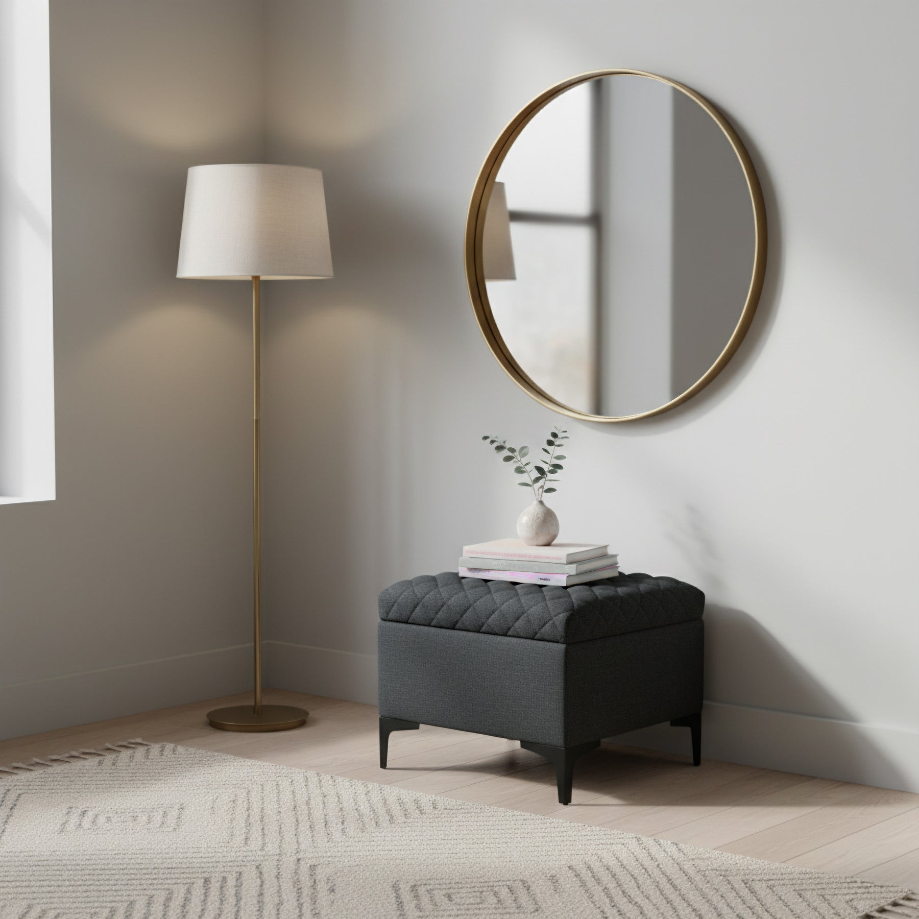 - Place our ottoman in your living room as a chic coffee table, in your bedroom as an elegant accent, or in your entryway for a touch of luxury. It effortlessly adapts to various design styles, from classic to contemporary.