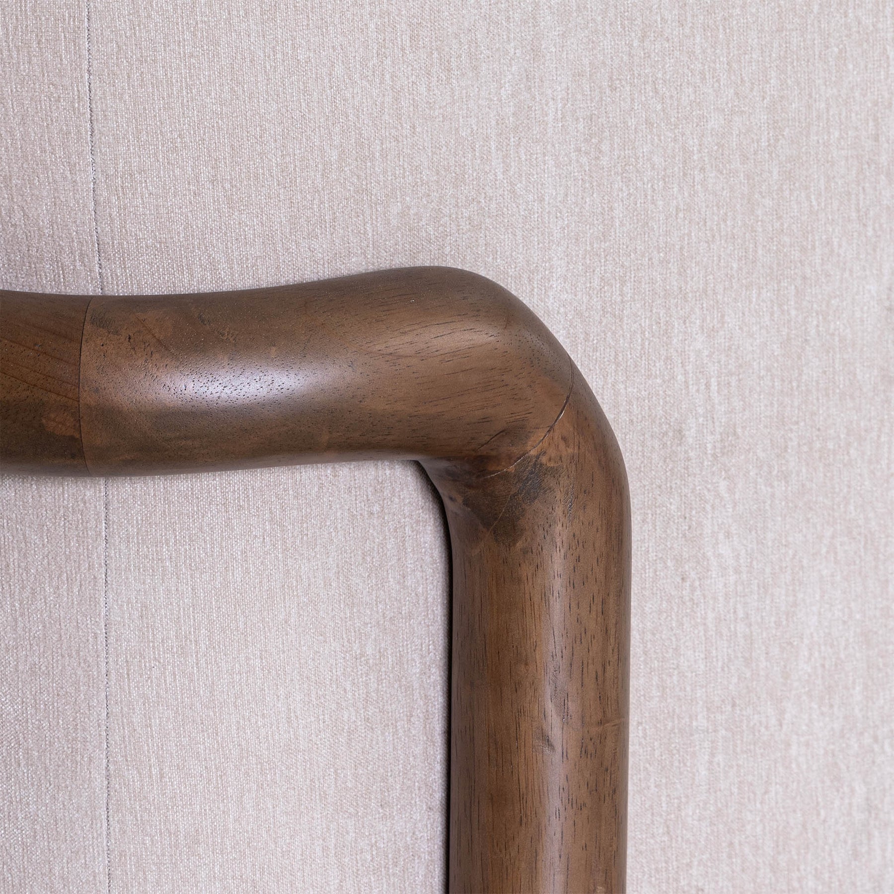 This Sofa combines a sustainable fabric blend (50% recycled polyester, 50% virgin polyester) with a sleek, exposed rubberwood frame. Loose back cushions and an attached seat create a sophisticated yet comfortable profile that works beautifully in large living areas.
