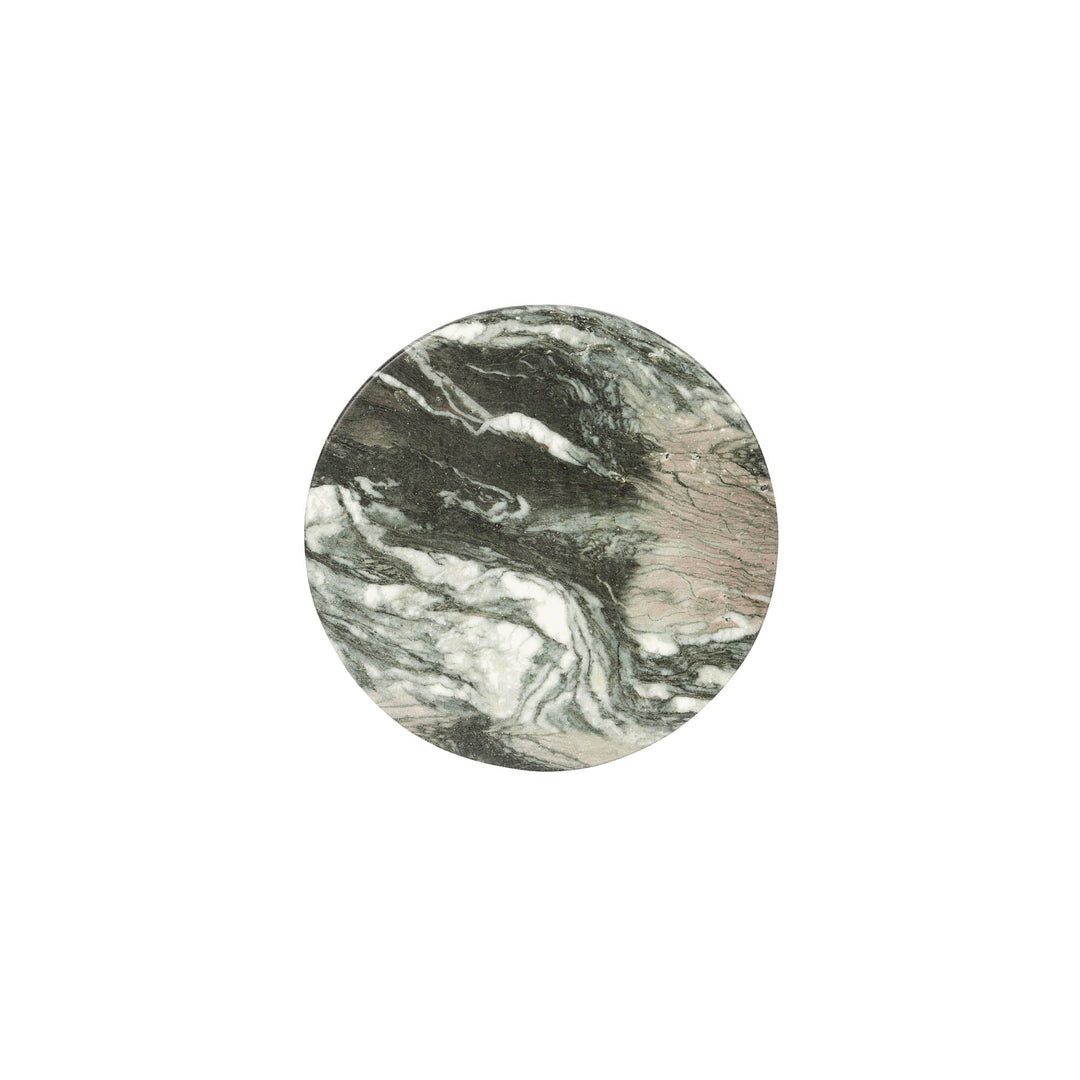 This Side Table, crafted from concrete with a remarkably realistic green marble hue finish.
