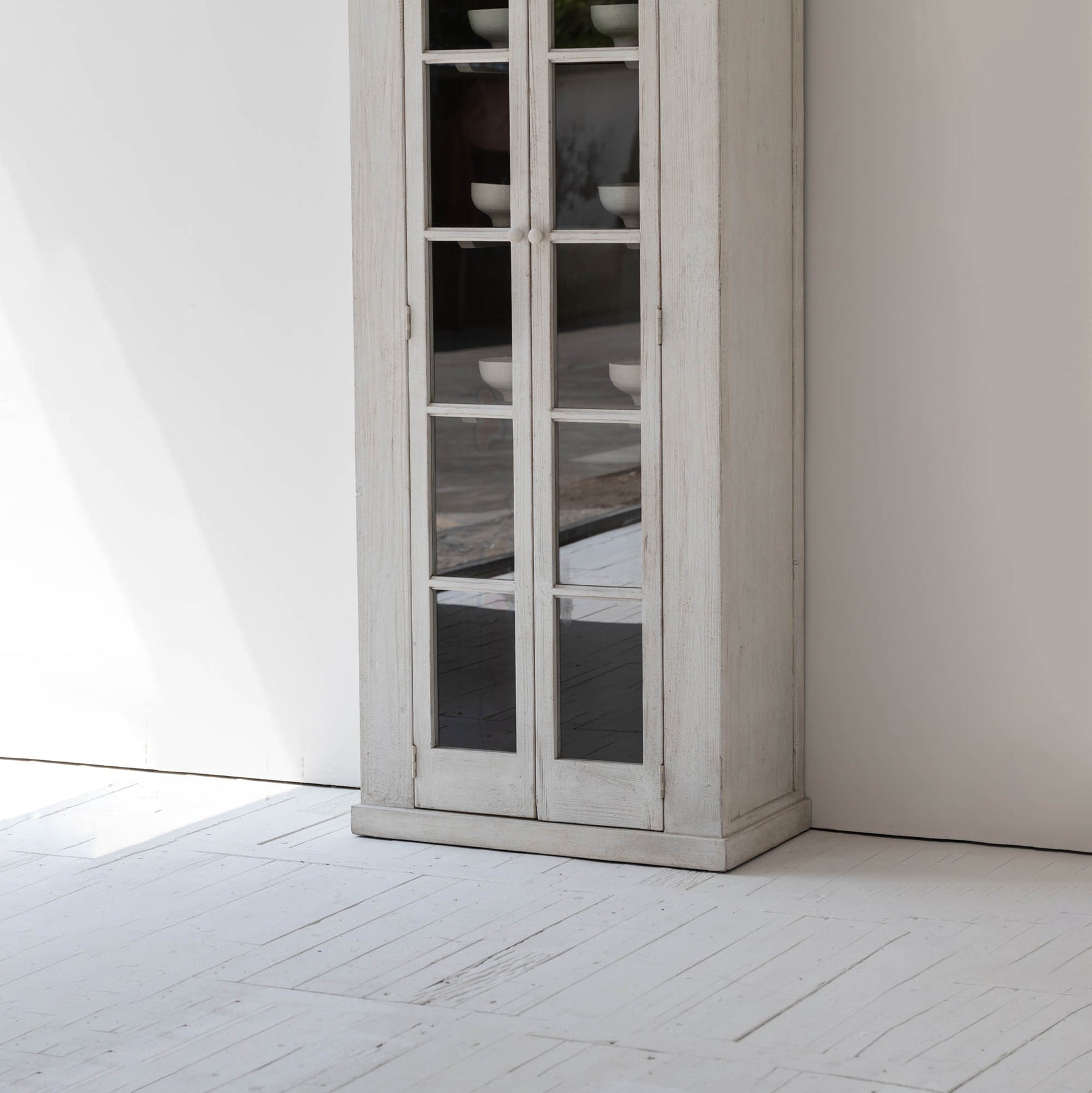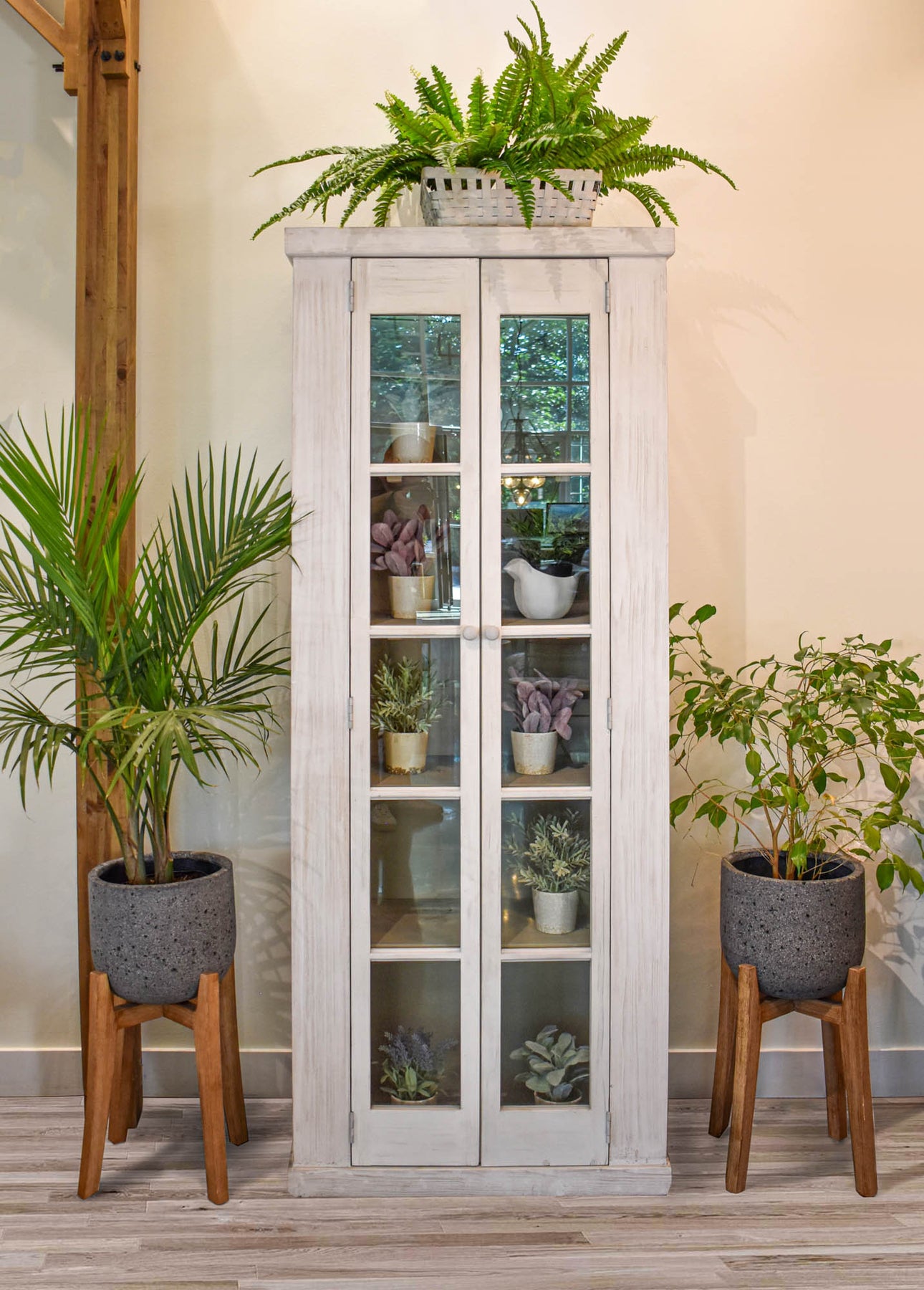 Additional Dimensions: Inside Shelves from Top to Bottom: 29 x 13.4 x 16.75; (Top) 29 x 13.4 x 12.3; 29 x 13.4 x 12.3; 29 x 13.4 x 12.3; 29 x 13.4 x 16.9; (Bottom) Magnetic door latchesMaterials: Recycled White Pine, glass