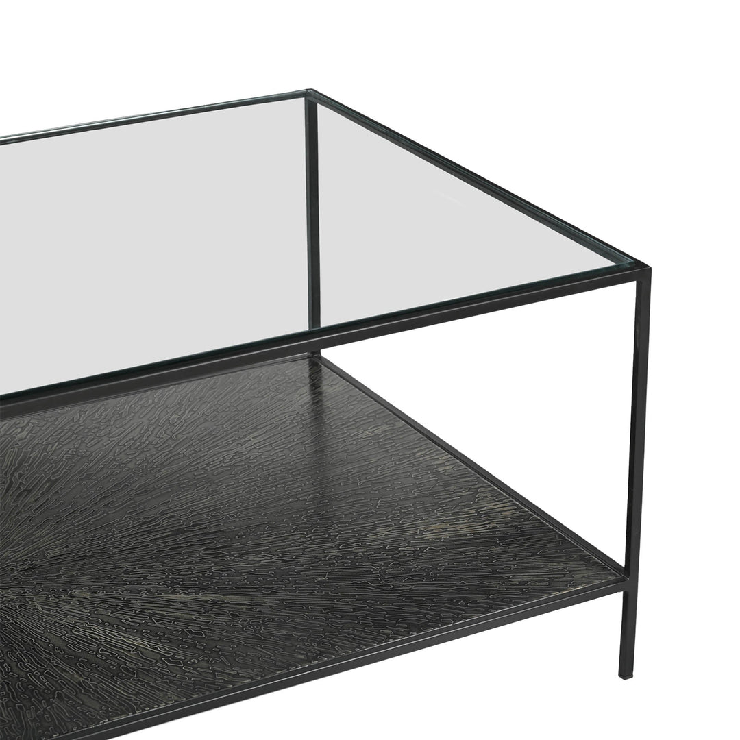 • Modern simplicity meets industrial flair. This coffee table blends clear tempered glass with a textured lower shelf, making it a functional statement piece for any space.