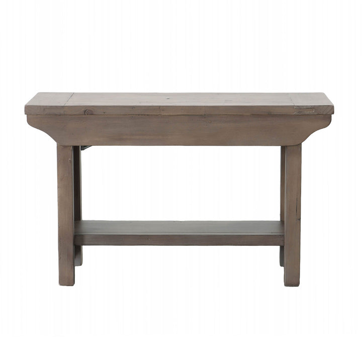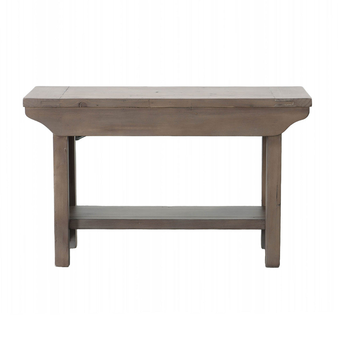 Top thickness: 1; Top dimensions: 31 x 12.25 xs 19; Leg height: 14.5; Inside leg dimensions (short side): 10.75; Inside leg dimensions (long side): 24.75; Distance form tabl top to bottom table frame: 4.25; Distance from floor to bottom table frame: 14.5; Shelves: 1; Shelves dimensions: 23.5 x 7.5 x 12.75;