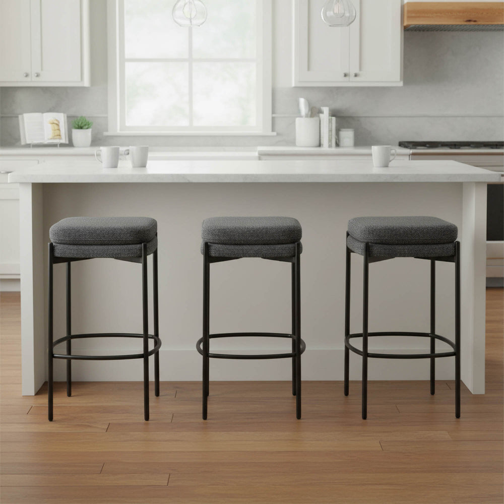 Elevate your kitchen or bar space with this counter stool. Designed with an upholstered seat and sleek powder-coated legs, it delivers both comfort and modern elegance. Its neutral fabric and clean lines make it a perfect fit for any decor.