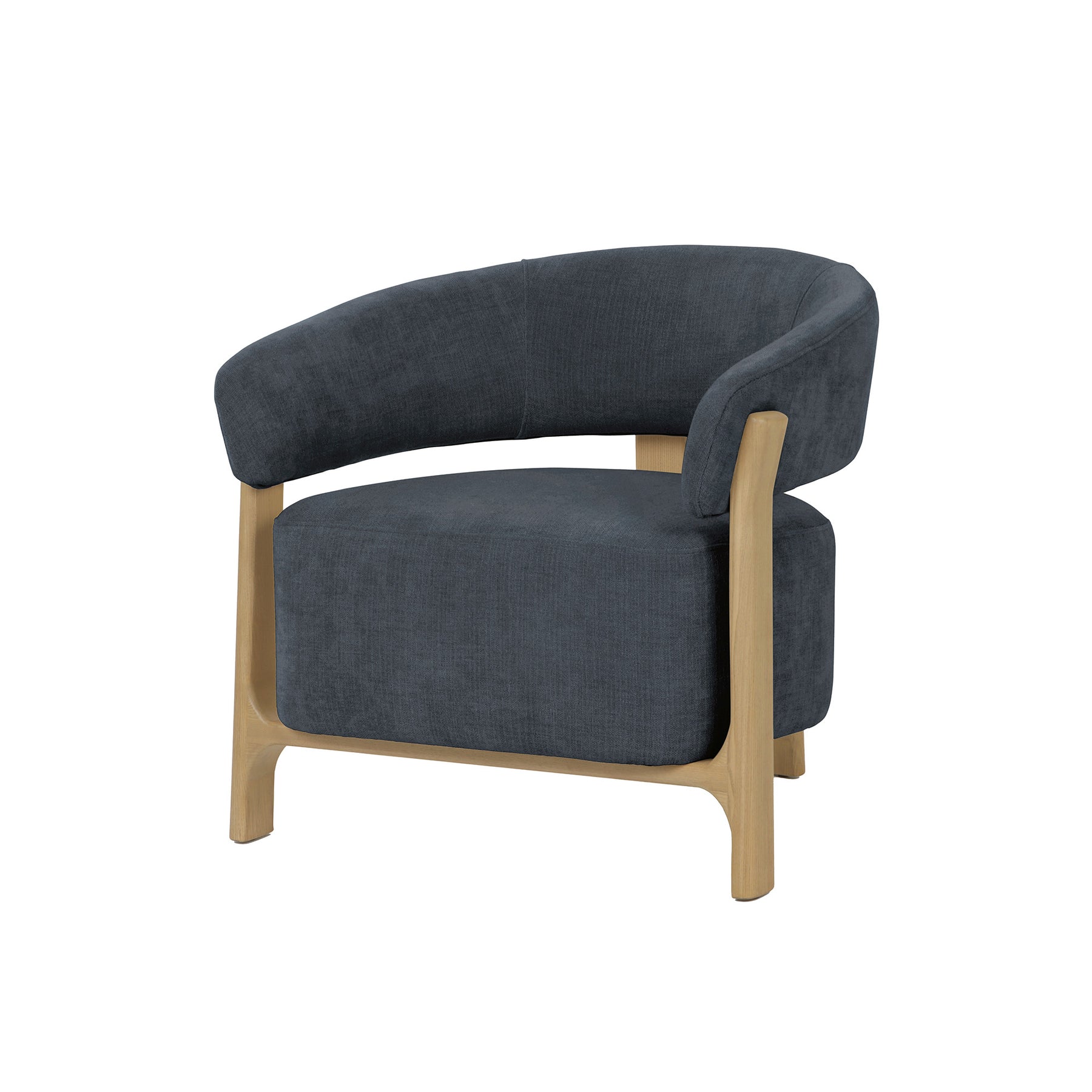 This club chair is crafted with a solid ash wood frame and upholstered in a soft 100% polyester fabric in a rich Spruce Grey hue. The deep tone adds depth and sophistication, while the rounded back and well-defined silhouette create a strong yet inviting presence.- Solid ash wood frame provides durability, stability, and natural warmth