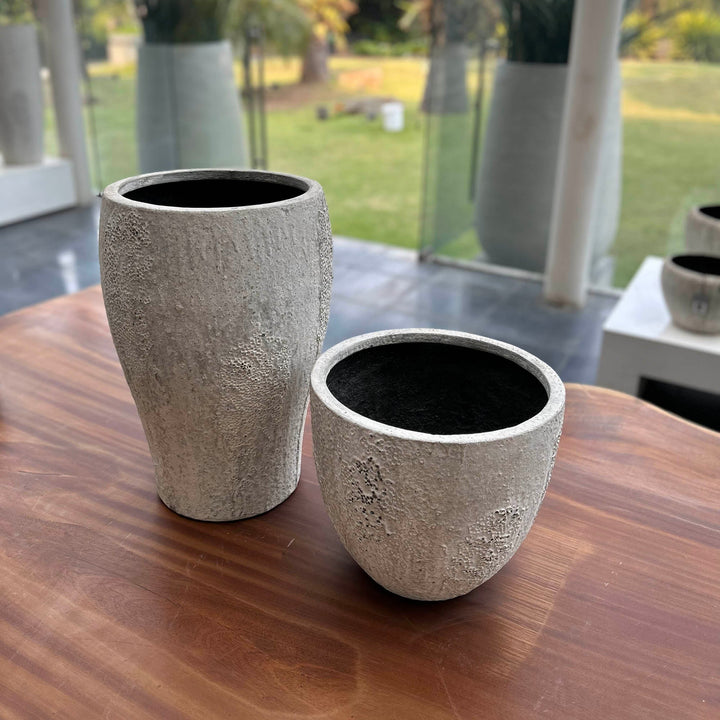 Embrace rustic charm with this planter in Antique White. This unique piece exemplifies understated elegance with a nod to traditional design aesthetics. It's carefully crafted from resilient ro-cement, demonstrating the durability and the enticing tactile appeal inherent in its construction. The spacious planter welcomes a variety of plant types, combining functionality with a visual appeal that effortlessly embellishes any space. Experience a seamless blend of traditional charm and modern utility to enhance your home or garden.