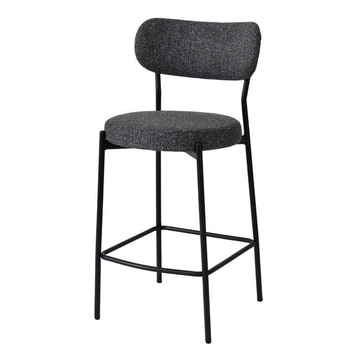 This counter stool blends contemporary style with luxurious comfort. Featuring a cushioned seat and sturdy powder-coated legs, it is designed for durability and elegance. Its sleek design and neutral tones make it a versatile addition to any modern space.