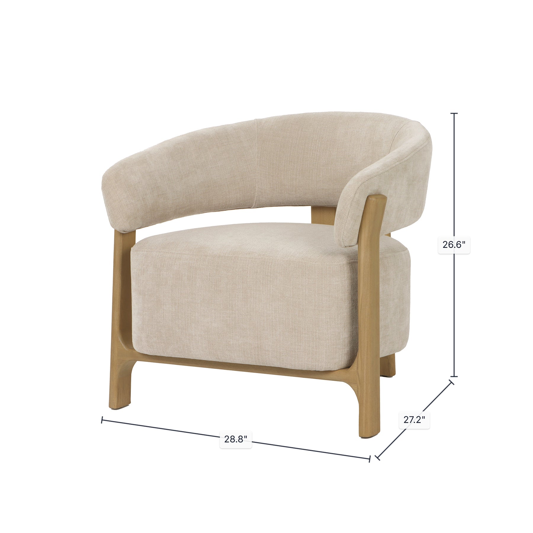 This club chair is crafted with a solid ash wood frame and upholstered in a soft 100% polyester fabric in a refined taupe tone. Designed with a beautifully rounded back and a well-defined silhouette, it delivers both visual impact and everyday comfort.- Solid ash wood frame provides durability, stability, and natural warmth
