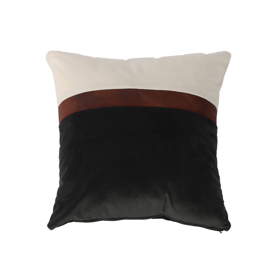 Fabric: Black/White Velvet - 100% Polyester, 100% Brown Leather Strip; Filling: 100% Fiberfill Recycled Polyester;