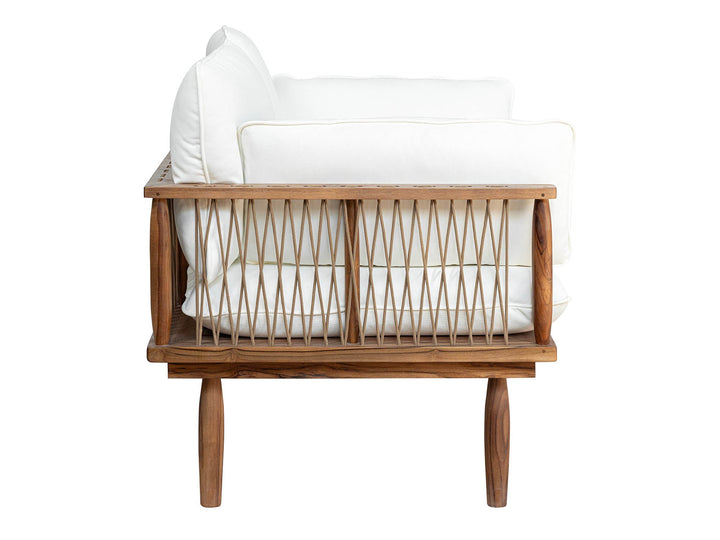 Teak Wood, Olefin Fabric (100% Polypropylene), Foam, Fiber Fill, Polyester Rope